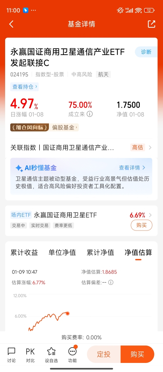 商业航天太火爆了。本周涨超15%。$永赢国证商用卫星通信产业ETF发起联接C$昨