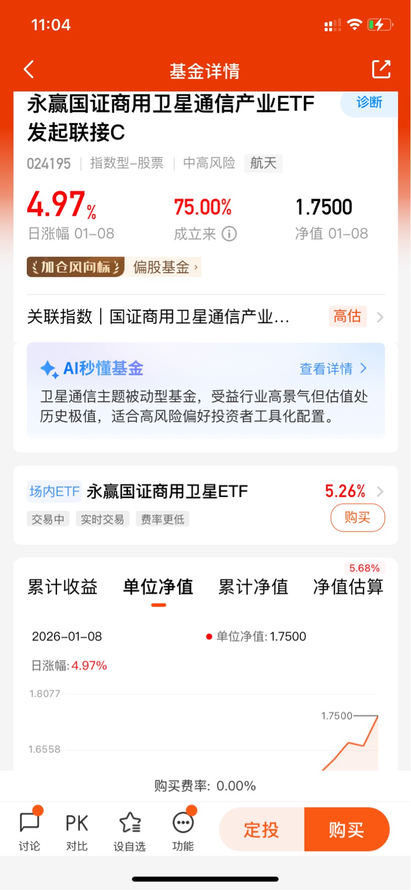 最近的震荡市场,还是有亮眼的一角的,就像卫星通信板块,状态可真是一路飙升!$永赢国证商用卫星通信产业ETF发起联接C$ 是一只卫星通信主题被动性基金,跟踪的卫星ETF是全市场首只、稀缺性比较强的,最近卫星通信产业政策支持和技术面利好不断,涨势持续向上,昨天涨了4.97%,近一个月涨超35%,业绩优秀亮眼,值得继续期待了!#商业航天持续火爆:2026或迎火箭发射大年#