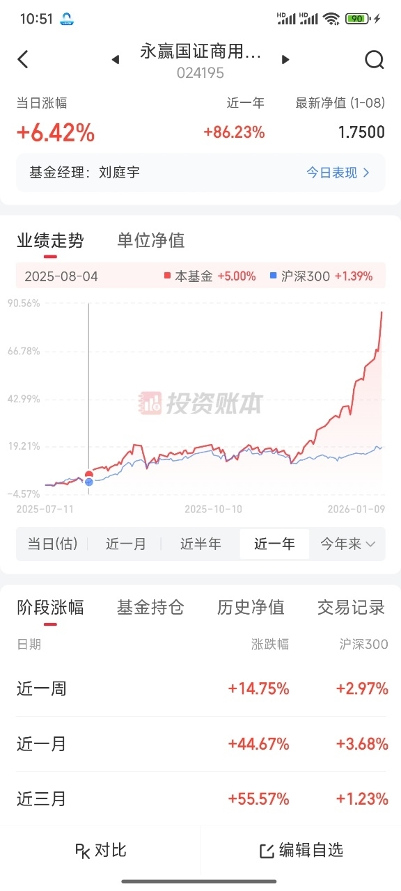 你就是这条衔最靓的基,永赢卫星通信C024195今天估值大涨6.42%,自选中涨
