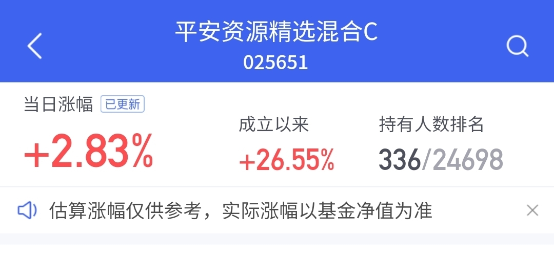 $平安资源精选混合C$ 今晚涨2.83%,也很给力