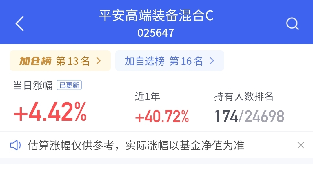 $平安高端装备混合C$ 今晚涨4.42%,爆发了!