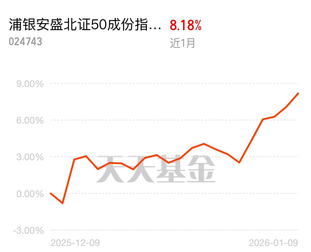 最火的科技赛道在北证50中均有映射,商业航天、创新药、光模块都在北交所池子里,不限额的浦银安盛北证50跟踪误差小。$浦银安盛北证50成份指数C$ $浦银安盛北证50成份指数A$