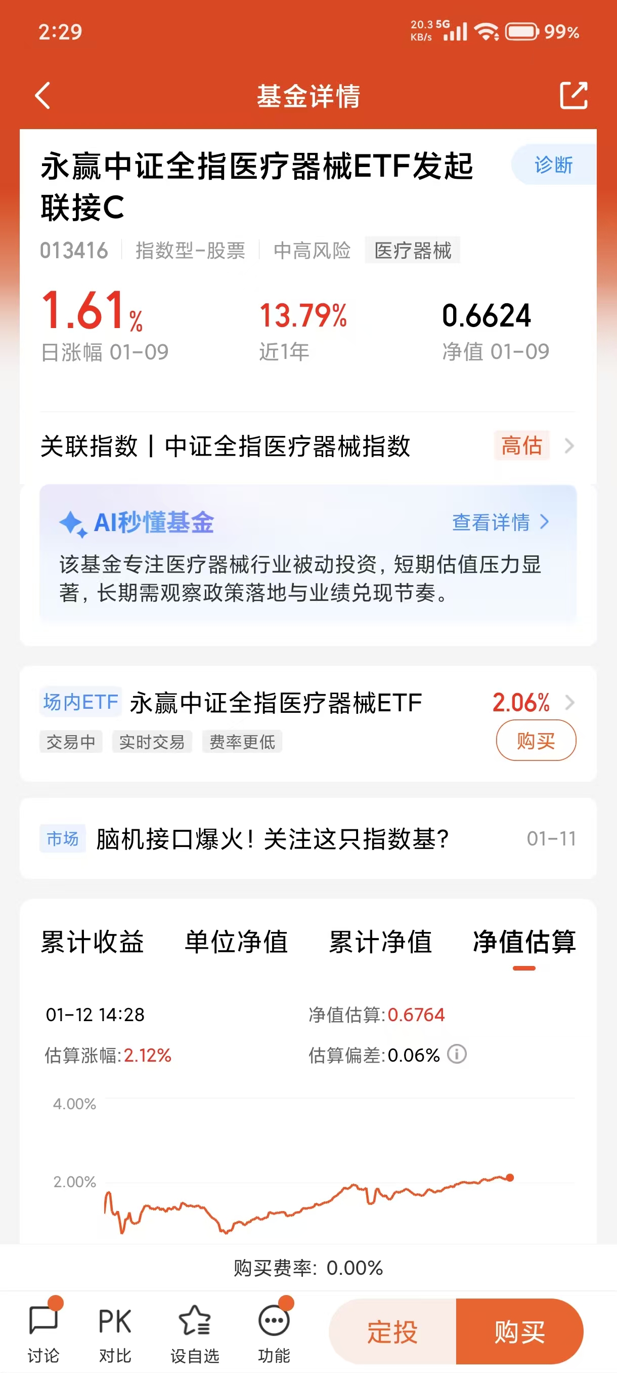 今天我选择加仓1000元永赢中证医疗器械联接C(013416),基金主要投资于中证医疗器械ETF(159883),全市场同类规模最大、脑机含量最高(23%)的医疗器械ETF。$永赢中证全指医疗器械ETF发起联接C(OTCFUND|013416)$