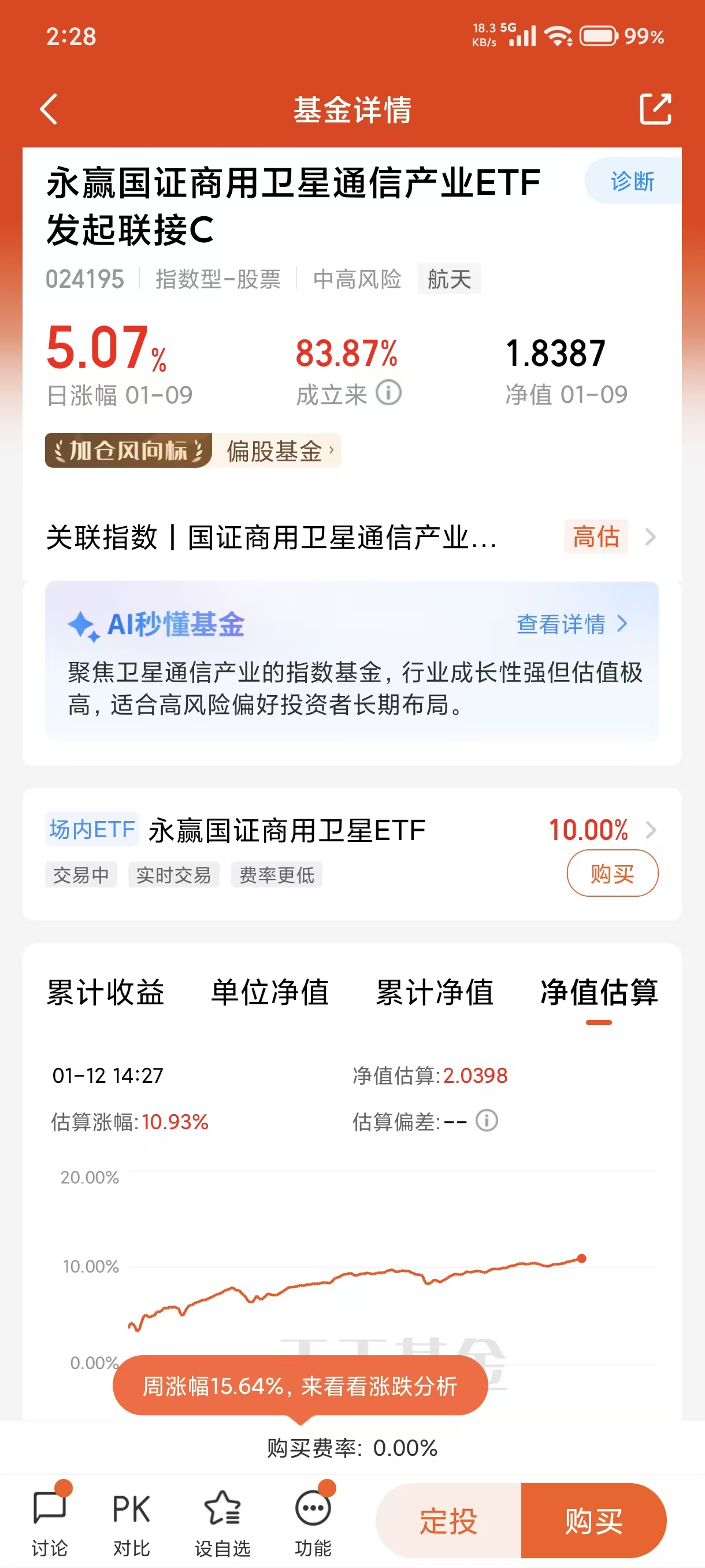 今天我选择加仓1000元永赢国证卫星联接C(024195)。基金持仓从最上游的卫星制造、到中间的通信服务,再到下游的终端应用,整个产业链上的关键环节都覆盖到了。而且这支跟踪的指数权重分配很有讲究,约65%的仓位都放在卫星制造这个核心爆发环节,精准卡位商业航天+卫星通信的主线。$永赢国证商用卫星通信产业ETF发起联接C(OTCFUND|024195)$