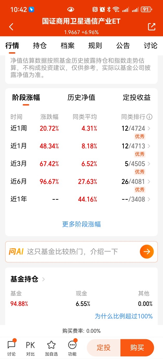 $永赢国证商用卫星通信产业ETF发起联接C$ 是行业首支且唯一聚焦卫星互联网产业,跟踪的国证商用卫星通信产业指数,主要聚焦于商业航天产业链中上游的卫星制造与发射环节。来看看业绩,近一周涨幅+20.72%,近一个月涨幅更是高达+48.34%,近六个月涨幅高达+96.67%,弹性不错耶。#GEO概念连续走强 AI应用领涨市场#