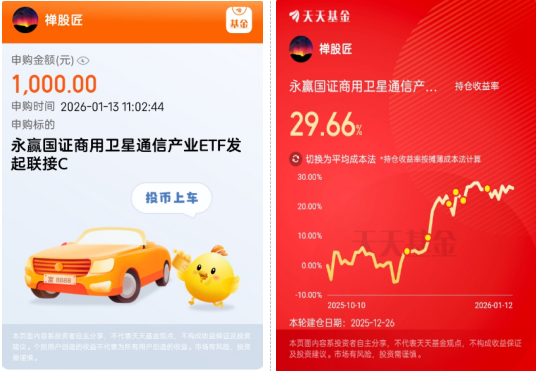 今日卫星主题出现了调整,我赶紧加点仓——$永赢国证商用卫星通信产业ETF发起联接C(OTCFUND|024195)$。这基太野了!成立半年净值飙96.67%,2026年开年6天又冲23.69%,年前轻仓跟了点,收益直接奔30%,香到跺脚!