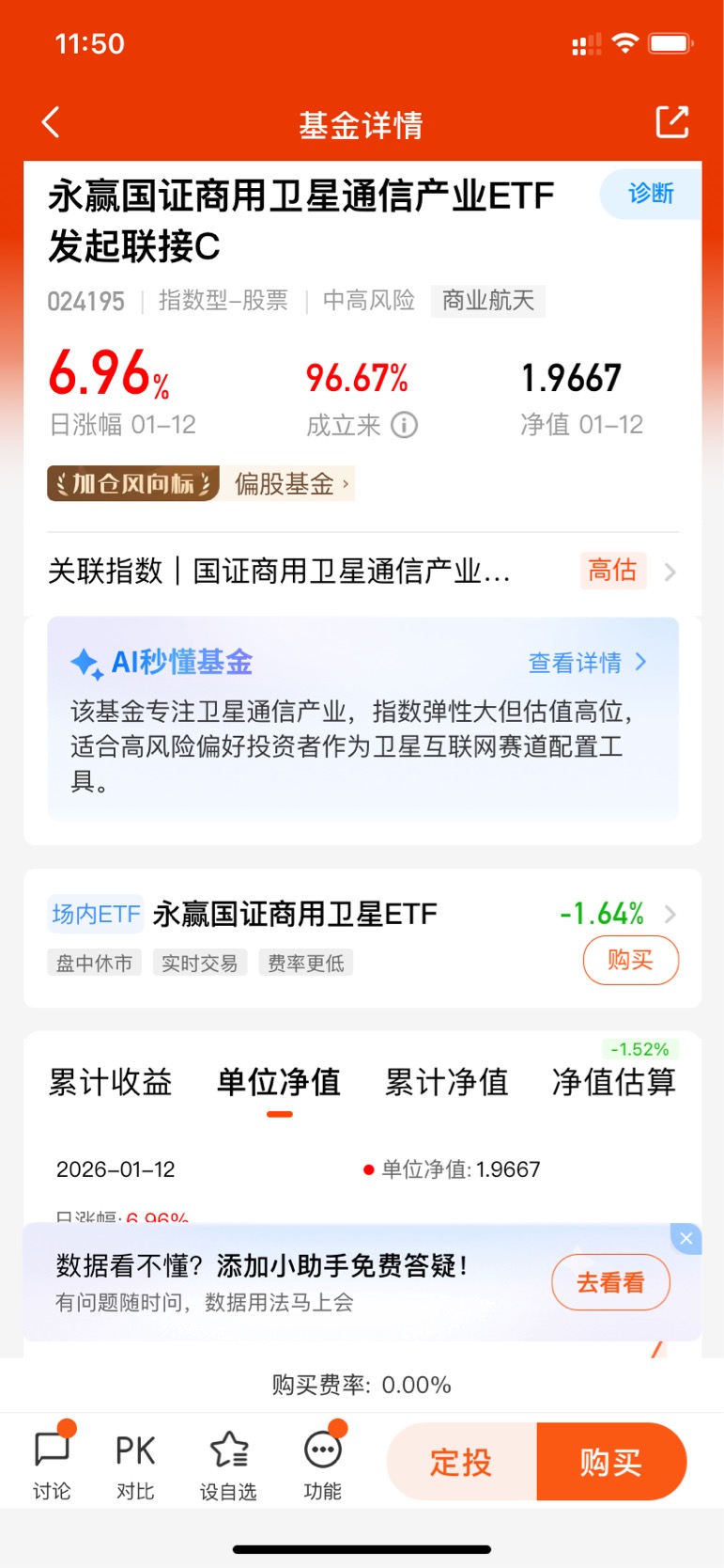 $永赢国证商用卫星通信产业ETF发起联接C$ 是一只聚焦卫星通信主题ETF链接基金,跟踪的卫星ETF是全市场首只、稀缺性比较强的,昨天涨了6.96%,三连涨,涨超17%!近一个月涨超48%,业绩弹性很强!卫星互联网作为商业航天中发展最成熟的分支之一,是新一代通讯技术的核心方向, 期待了接下来更好的表现咯!#2025超额关键词#