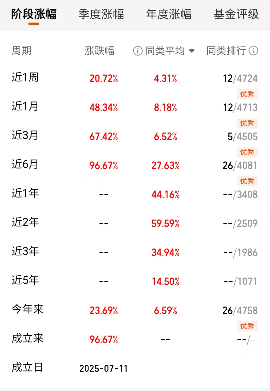说到把握卫星的机会,就不得不提$永赢国证商用卫星通信产业ETF发起联接C$(024195)。这只基金成立于2025年7月11日,业绩比较基准为国证商用卫星通信产业指数收益率95%+银行活期存款利率(税后)5%,成立以来收益96.67%,今年以来收益23.69%,近一月收益48.34%。作为全市场首只且规模最大的卫星ETF,最新规模达到117.69亿元,成为市场上诞生的首个单只规模破百亿元的卫星ETF。