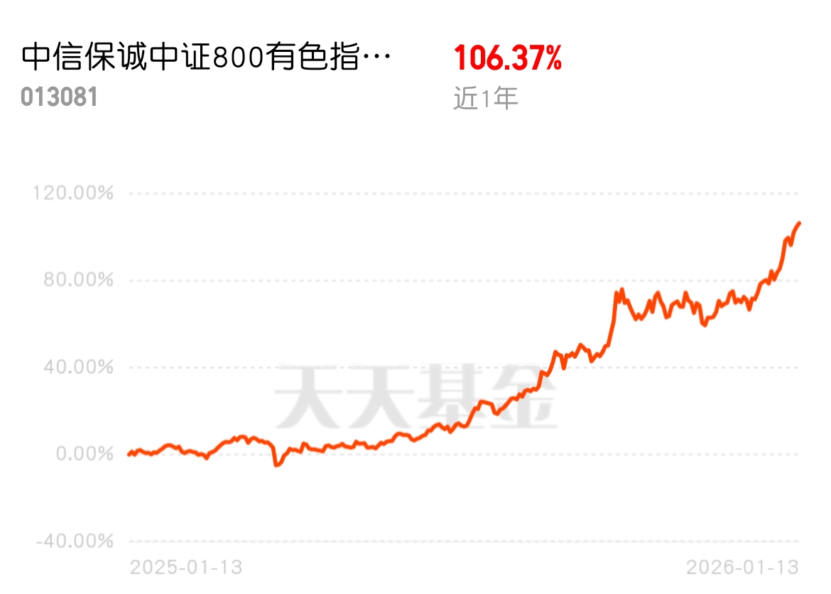 有色板块细分赛道全面开花,多点驱动上涨!中信保诚中证 800 有色指数 (LOF) C 近 1 年 106.37%,同类有色指数里近一周业绩最好,买弹性最好的才能全面享受细分红利,赶紧上车。$中信保诚中证800有色指数(LOF)C$