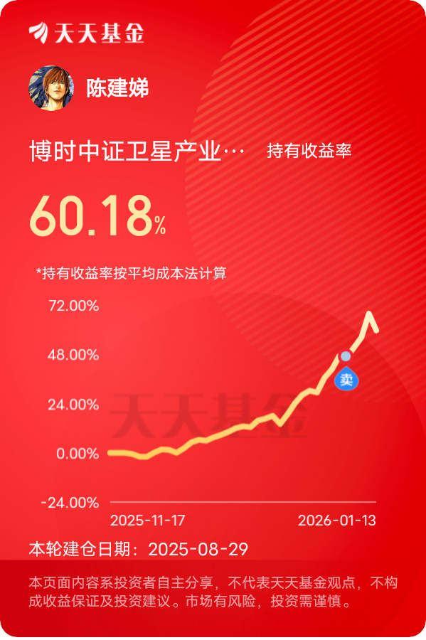 发现$博时中证卫星产业指数C$ 优势很明显,跟踪的是全产业链覆盖的中证卫星产业指数,五大核心领域全都囊括了,成分股布局均衡分散风险,还能全面吃满卫星产业全链路红利#晒收益#