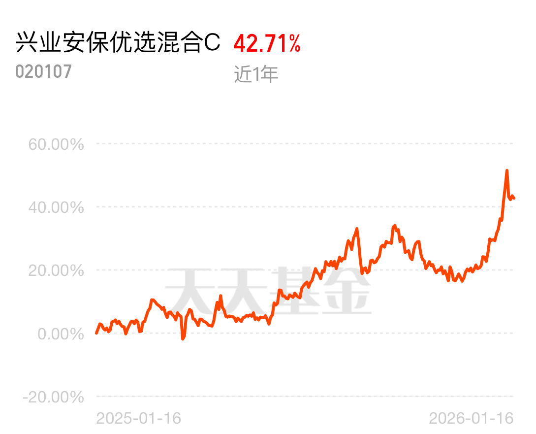 2026 年市场转向盈利驱动,科技和红利成热门主线,兴业安保优选混合 C 太给力,近 1 年收益 42.71%,隔壁安保今天又跑第一,主动管理能力拉满,普通人跟着投不用费脑子。