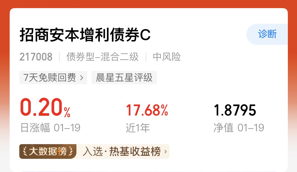 最近的市场真的是越来越看不明白了,权益市场这边一直在震荡存在,纯债也没有什么意思了,我觉得在这种行情下还是要去看固收+,$招商安本增利债券C$ 这只基金昨天收了20个蛋,真的是比较稳健的基金了