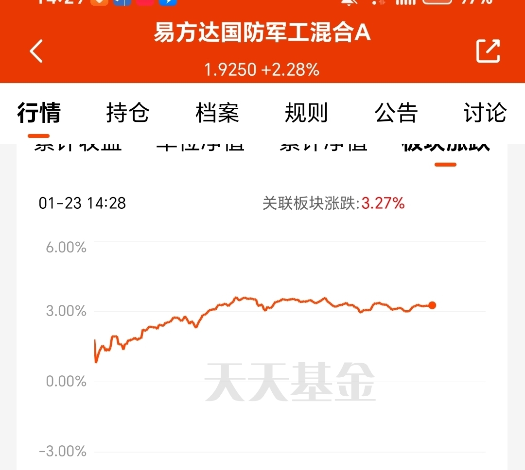 截至发文前$易方达国防军工混合A$ 预计上涨3.27%。