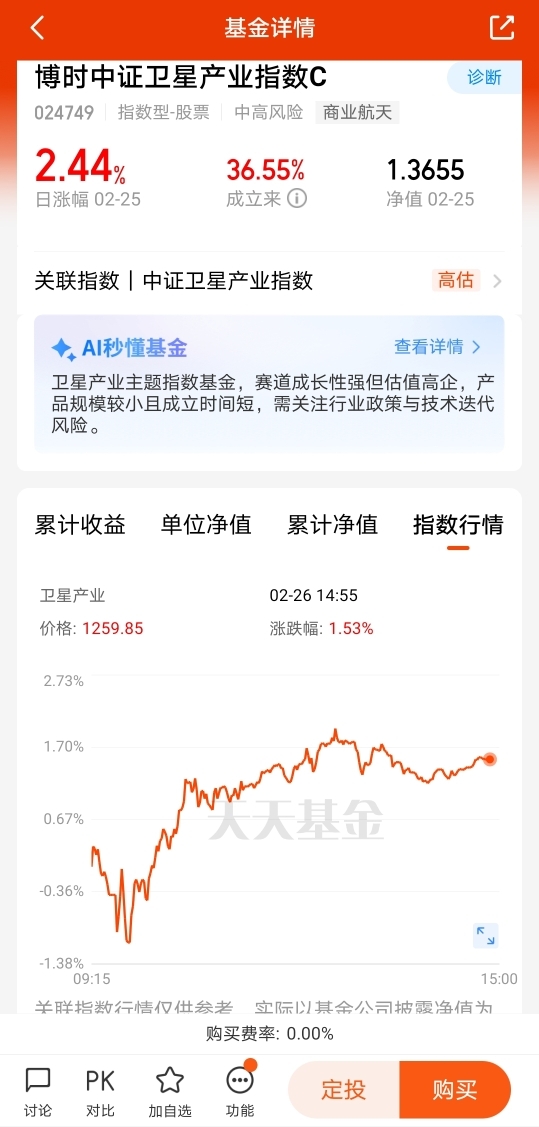 $博时中证卫星产业指数C$是真的覆盖卫星全产业链,成分股布局也更均衡,跟踪指数很准,长期业绩和持仓质地都更扎实,布局卫星这块,表现确实能打