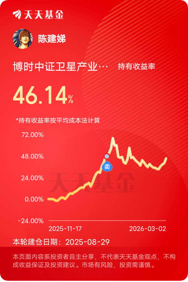 $博时中证卫星产业指数C$ 覆盖卫星整条产业链很全,跟指数贴合度高,持仓也更分散,不管是行情轮动还是长期拿都能跟上#晒收益#