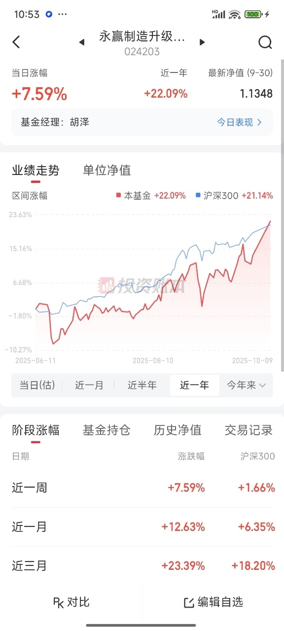 制造升级开门红啊!今天又冲了7个多点,永赢制造升级C024203今天估值又大涨7.59%,近三个月上涨16.74%,这只是新基金,刚成立三个多月业绩不错,趁着现在点位不高上车,等着大涨起来等吃肉啦!
