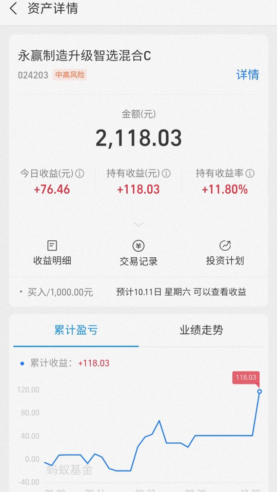 稳住了,上证指数最终收盘3933点,站稳3900点,一些板块表现亮眼,其中可控核聚变就是其中一个,永赢制造升级智选就聚焦可控核聚变,净值已经更新,本来我预计涨个6个点就已经满足了,没想到净值竟然大涨7.34%,是我今天涨幅最高的基金之一,还是带给我不小的惊喜。今天过后,我的持有收益率升至11.8%,创收益新高,我还是比较满意的。