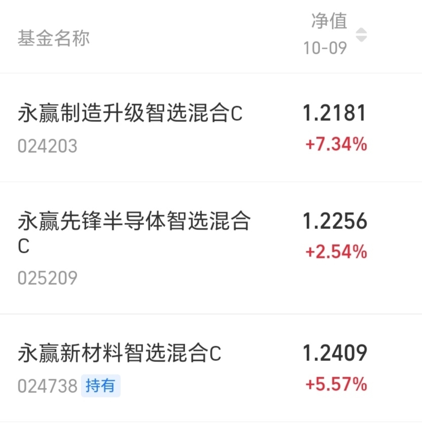 今天赚钱效应非常不错,我持仓的一些永赢类基金涨幅还是可以的,它家又出了几只新基金,今天也是非常猛。