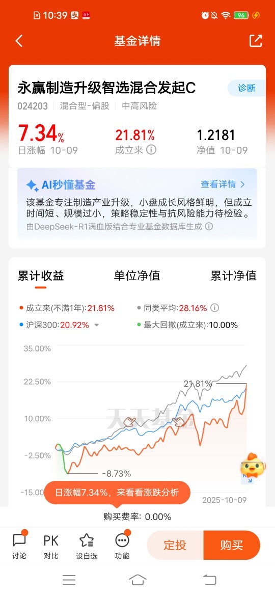 $永赢制造升级智选混合发起C$刚成立不久更有活力,昨晚涨幅7.34%,近三个月涨