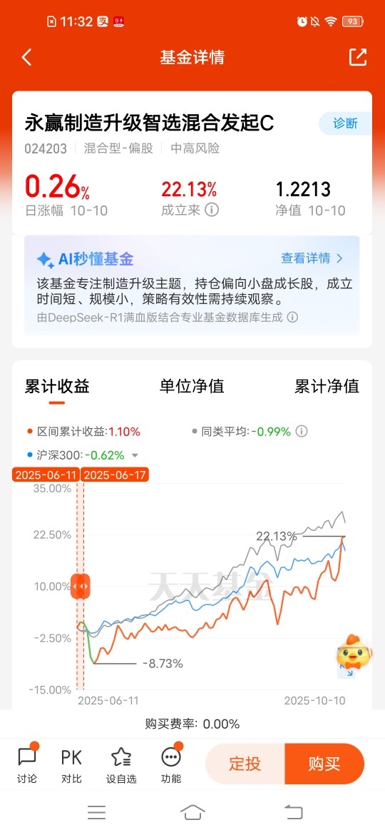 $永赢制造升级智选混合发起C$刚成立不久,上周五涨幅0.26%,近一周涨幅7.6