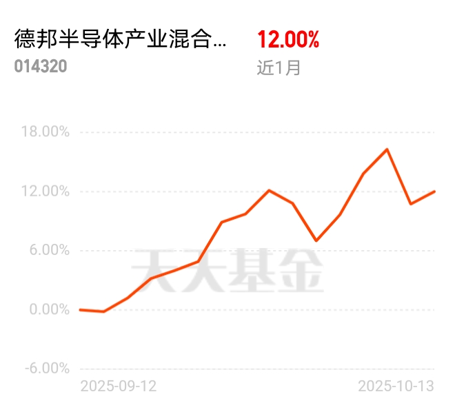 半导体指数刚稳住脚,这种时候入手成本低,毕竟它弹性强,跌完很快就反弹。德邦半导体产业混合C近1个月涨12.00%,现在上车,跟着赚一波。