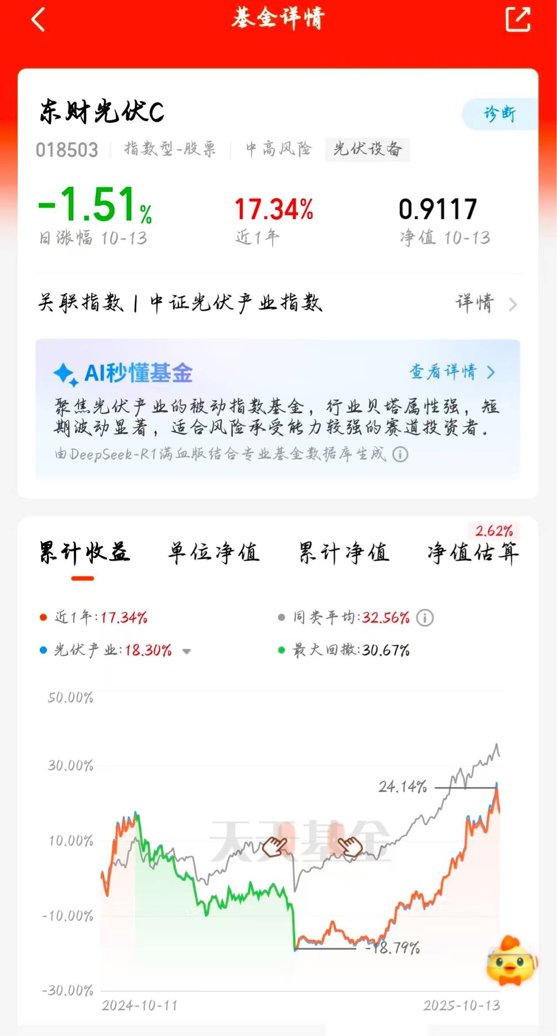 在反内卷趋势下,光伏行业领先复苏,东财光伏C今天预计上涨2.62%,近一月收益3.45%,七免优势大幅降低费用,是高效投资的选择。