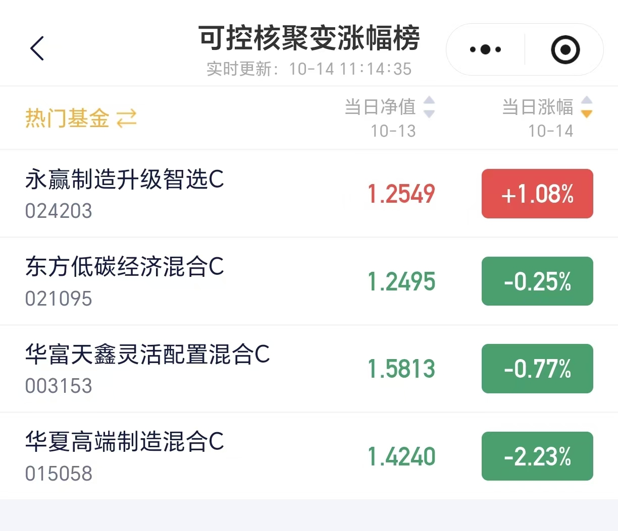 未来随着利好落地,可控核聚变板块的发展可能才刚开始,后续有望迎来弹性更大、趋势更强的主升期。专注布局前沿科技的$永赢制造升级智选混合发起C$ (024203)今日表现抢眼,涨幅同类第一!