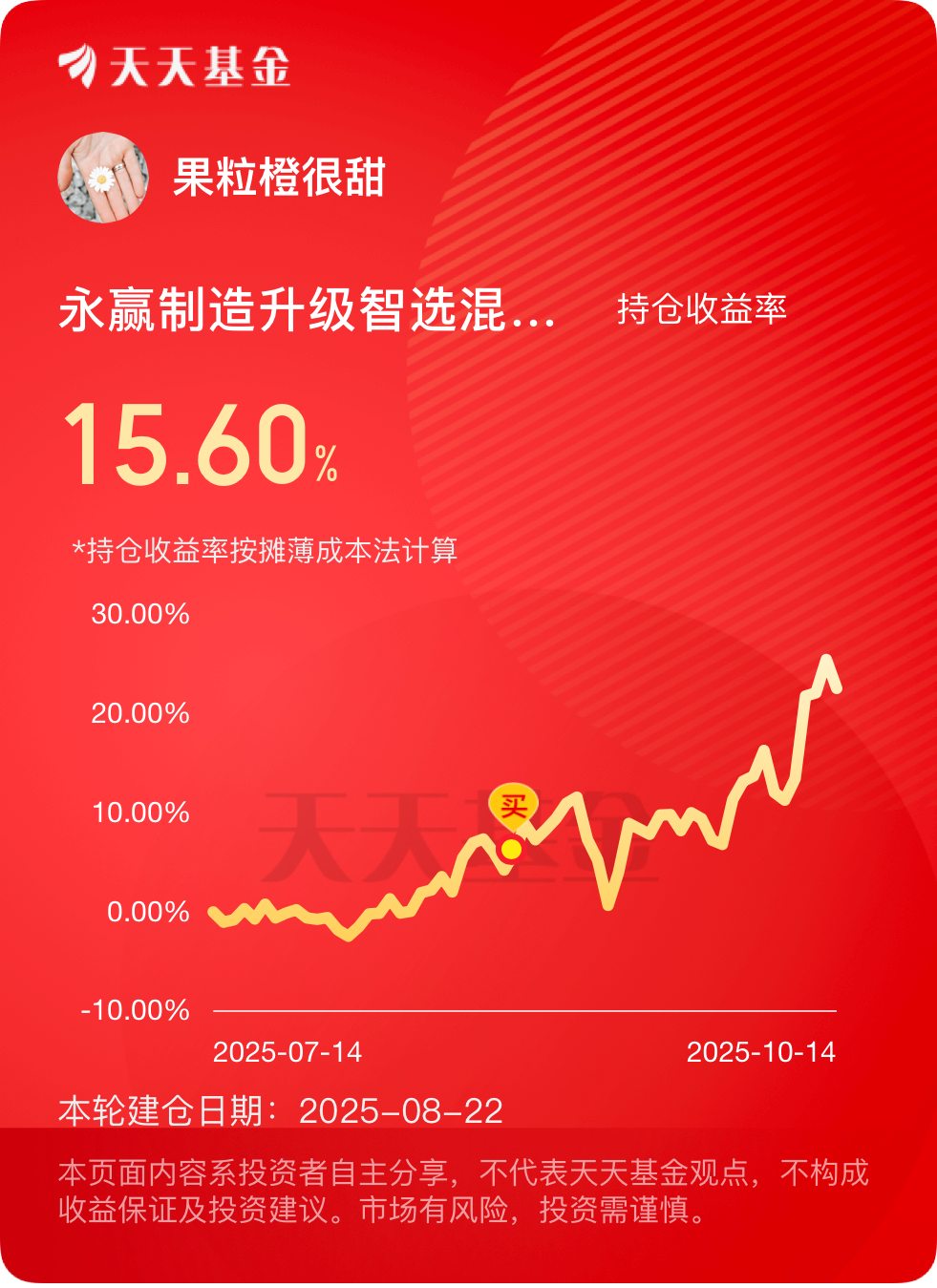 这基爆发力强,月内涨幅可观,回调是机会$永赢制造升级智选混合发起C$