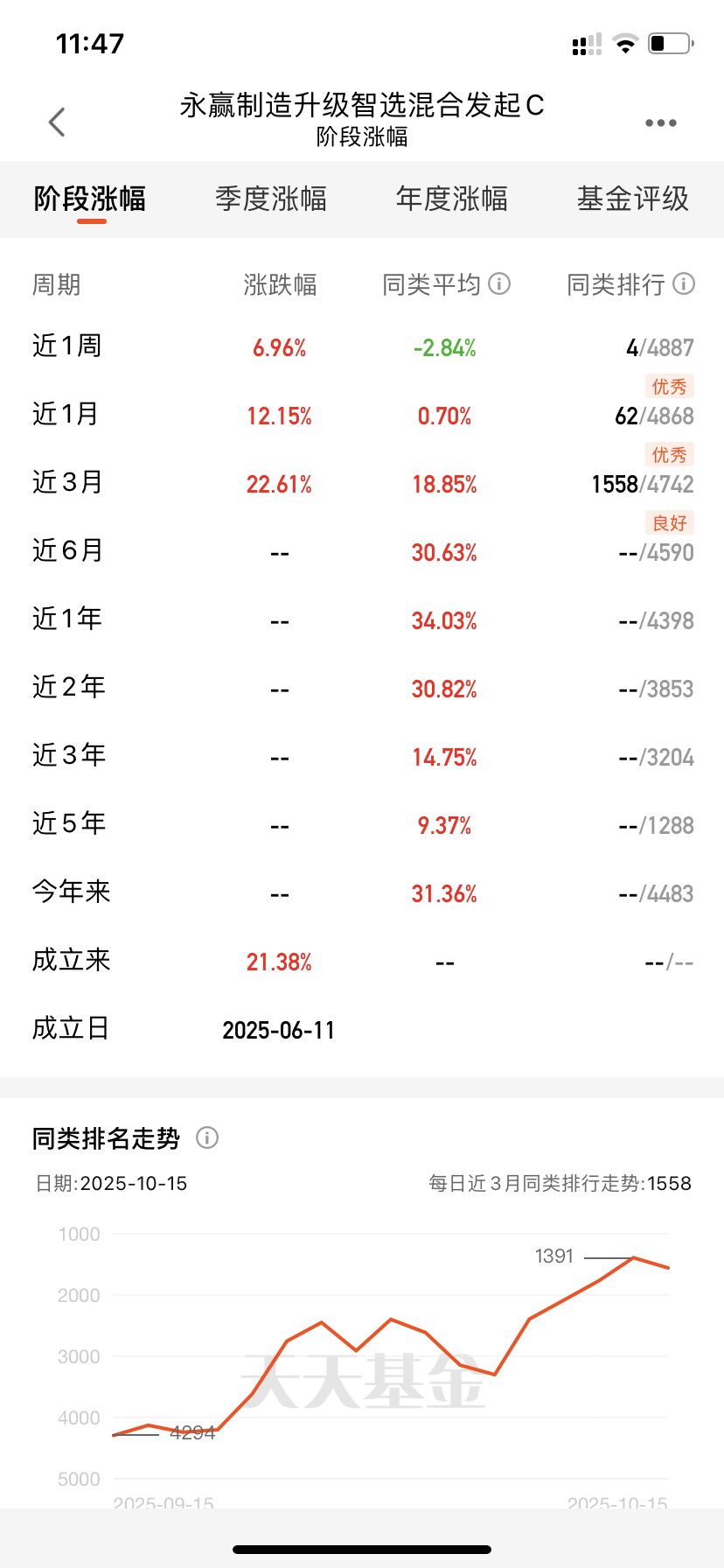 $永赢制造升级智选混合发起C$ 是刚成立的一只专注制造升级主题的基金,聚焦可控核变技术该前沿领域,该领域在市场上稀缺性还是很强的,近一周6.96%涨幅,同类平均−2.84%涨幅,业绩表现在同类中优秀的很了,从净值表现来看,这里回撤控制的还不错的,期待接下来的表现了!#3900点得而复失!A股风格要改了?#