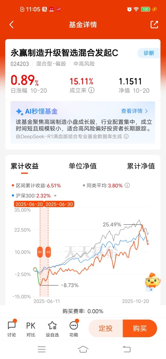 $永赢制造升级智选混合发起C$ 刚成立不久,更有动力,昨天涨幅0.89%,近三个月涨幅15.90%,主打核聚变方向,重点配置制造业转型升级相关领域包括高端装备、智能工厂、工业互联网等细分赛道,选择重点行业进行投资,是值得长期投资的投资者考虑的。定投起来也不错,跟上这波趋势。#宁德时代Q3净利润185.5亿元!如何解读?#