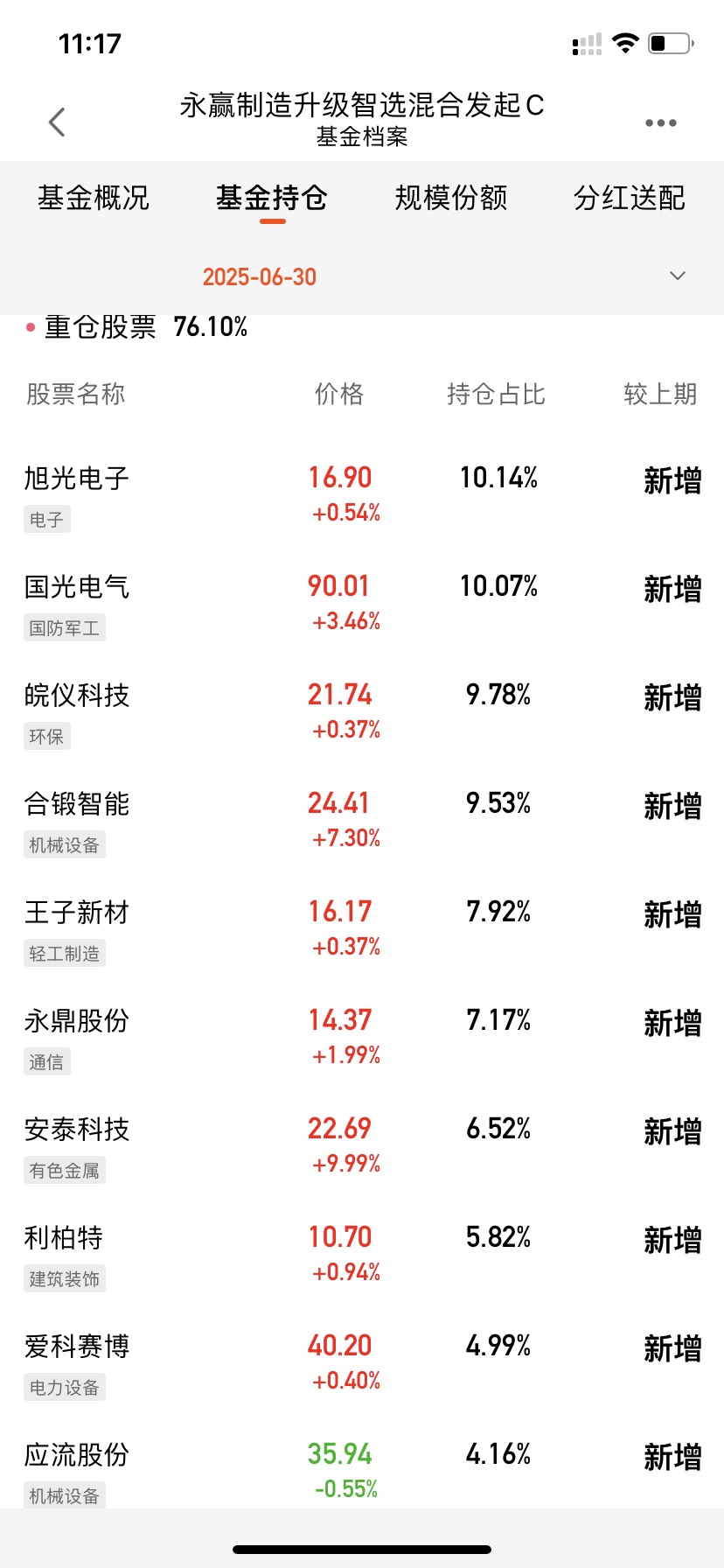 $永赢制造升级智选混合发起C$ 昨天涨了0.74%,二连涨了,看目前持仓股的表现,几乎飘红,涨势持续啊!近一个月8.54%涨幅,同类平均−0.35%涨幅,业绩表现还是很优秀的咯!永赢制造升级聚焦核聚变产业链,今年来,可控核聚变发展逐渐加速,板块前景广阔,值得继续期待了!#高盛看多A股:慢牛正形成 还有约30%上涨空间#