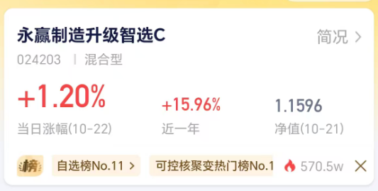 今年和能源赛道的热度在A股市场快速飙升,不少相关概念股都出现了不错的涨幅。$永赢制造升级智选混合发起C$ (024203)正是聚焦这一前沿领域的基金产品,该基金昨日净值反弹上涨0.74%,今天涨超1%,已经是连续第3天上涨了。