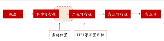 核聚变发展路径大致可分为四大阶段:(1)实验装置阶段(2)实验堆阶段(3)工程堆阶段,验证聚变能源的可行性与稳定性(4)商用聚变电站阶段,实现聚变能并网发电的目标。市场有望合力推动聚变行业进入快速孵化阶段,预计未来三年实现从实验堆到工程堆的过渡,行业或有望开启景气度周期。