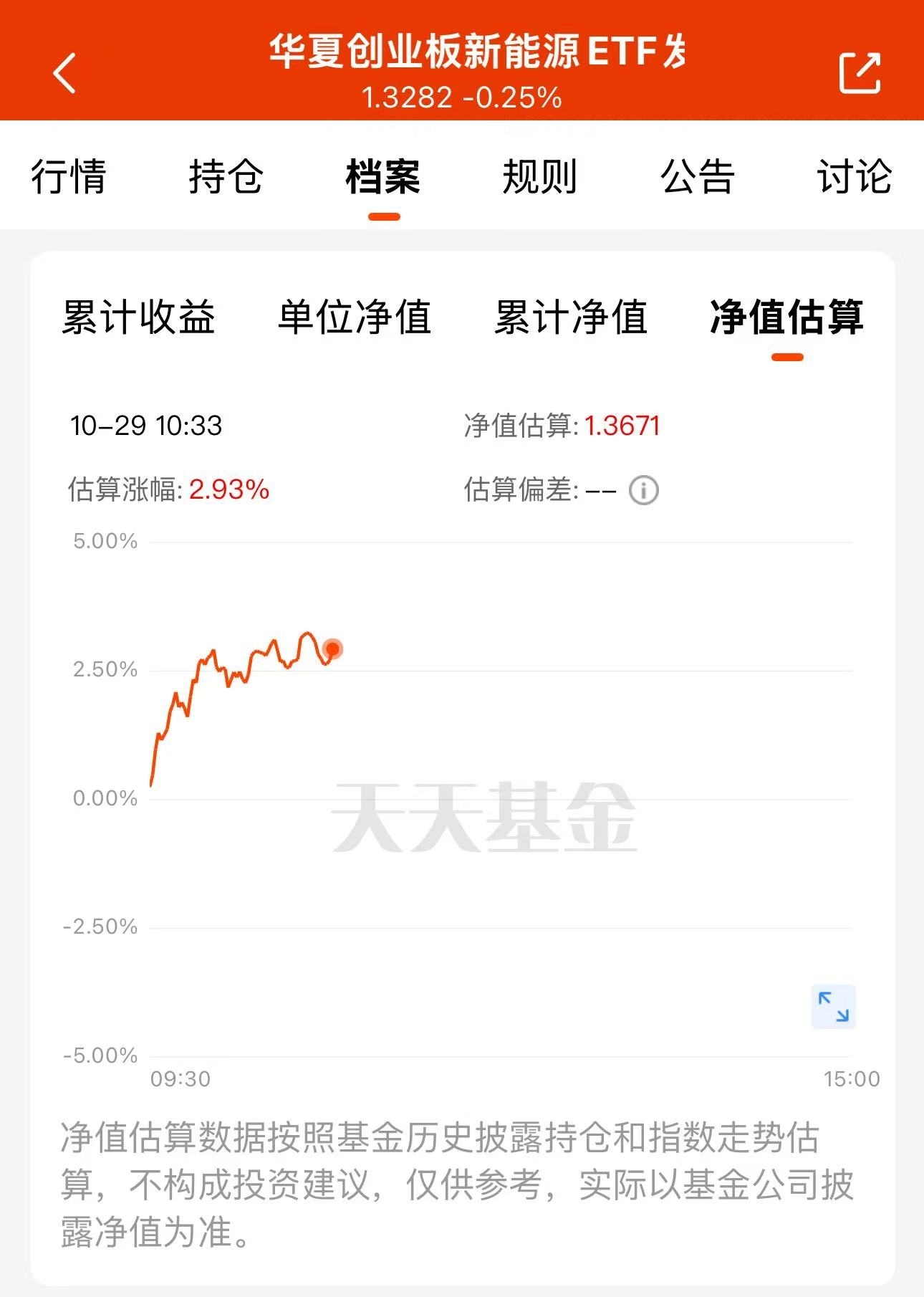 看好$华夏创业板新能源ETF发起式联接C$的高弹性,场内近三个月涨了46.52%,持仓都是新能源龙头,业绩增长确定性更强,这可是全市场首只,也是唯一一只创业板新能源的场外指数基金,看今天这趋势肯定是吃大肉了