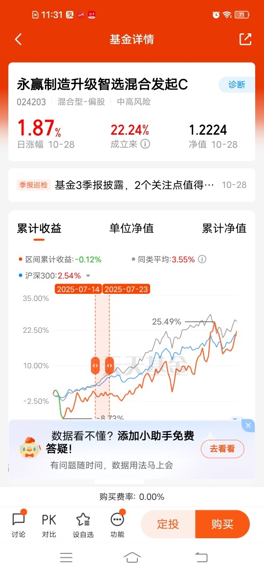 $永赢制造升级智选混合发起C$昨天涨幅1.87%,成立不久累积涨幅22.24%,