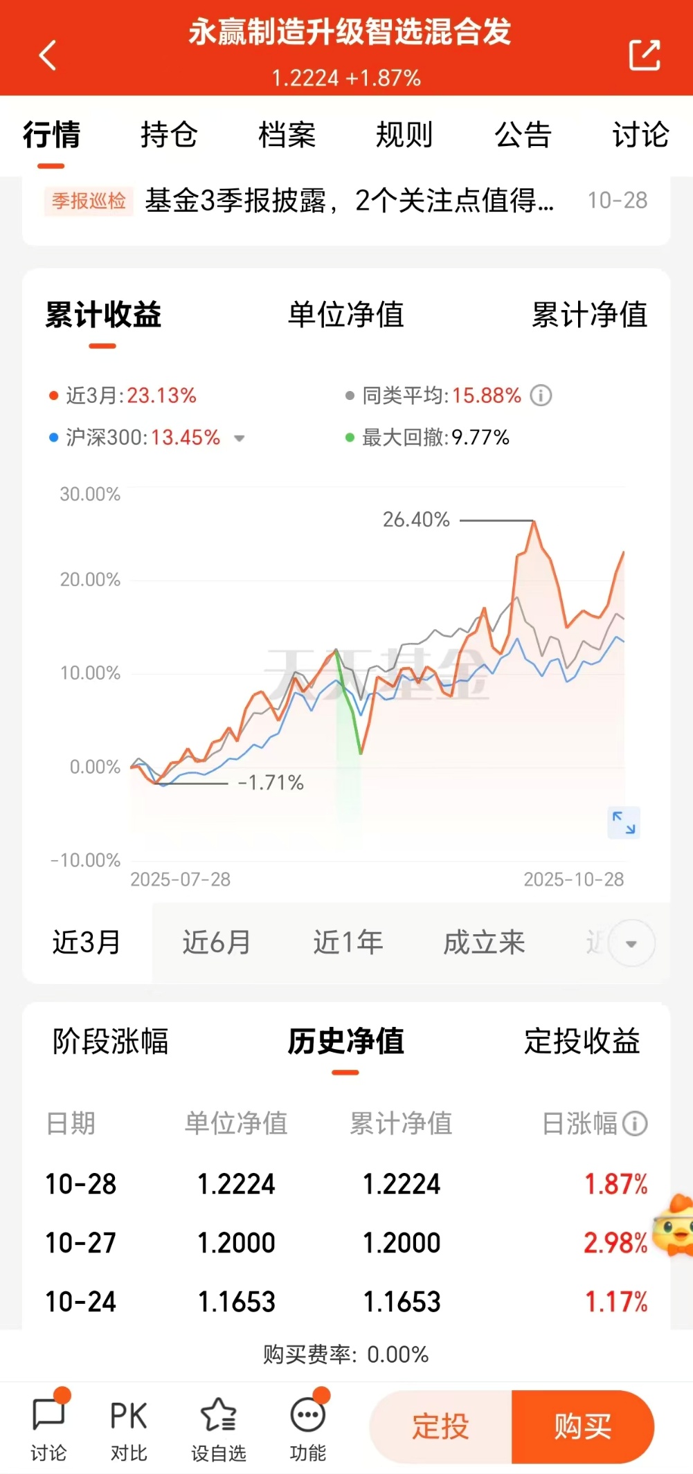 永赢制造升级智选混合发起C(024203)紧密围绕“制造升级主题”,瞄准电力设备、机械设备、电子等核聚变核心领域,提前锁定了这一战略赛道的成长红利。基金业绩表现强劲,近1周收益率达5.42%,近1月上涨9.06%,近三月累计涨幅23.13%,成立以来回报率达22.24%,展现了其在前沿产业投资中的领先优势。