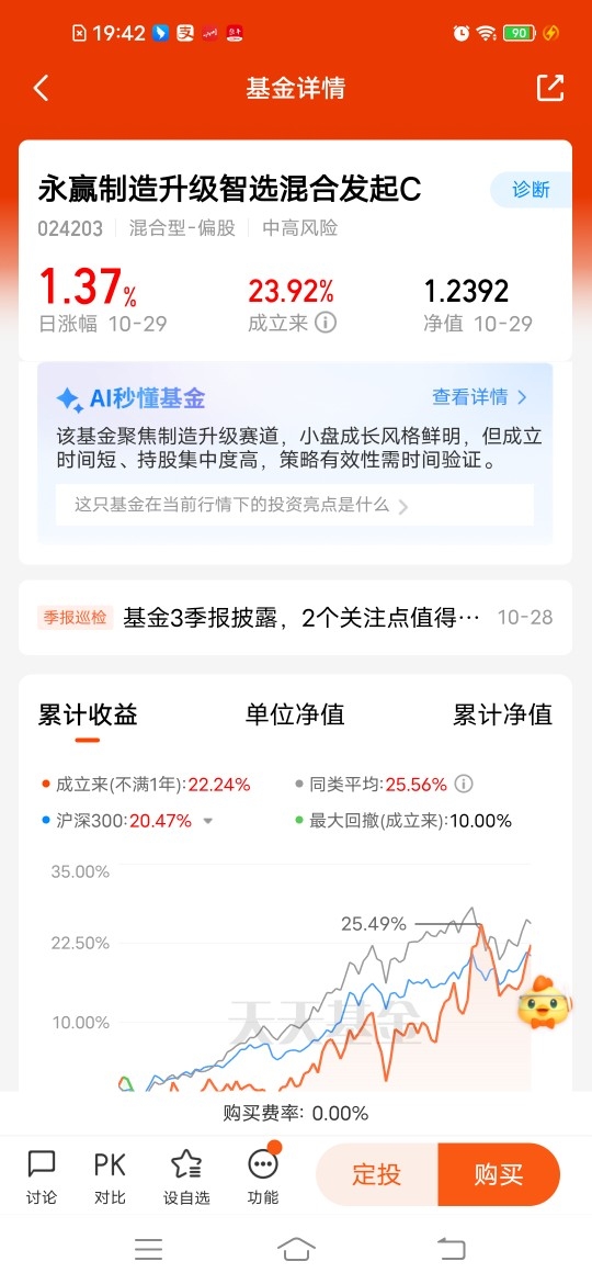 $永赢制造升级智选混合发起C$有筹码就有机会,今晚更新涨幅1.37%,成立不久累