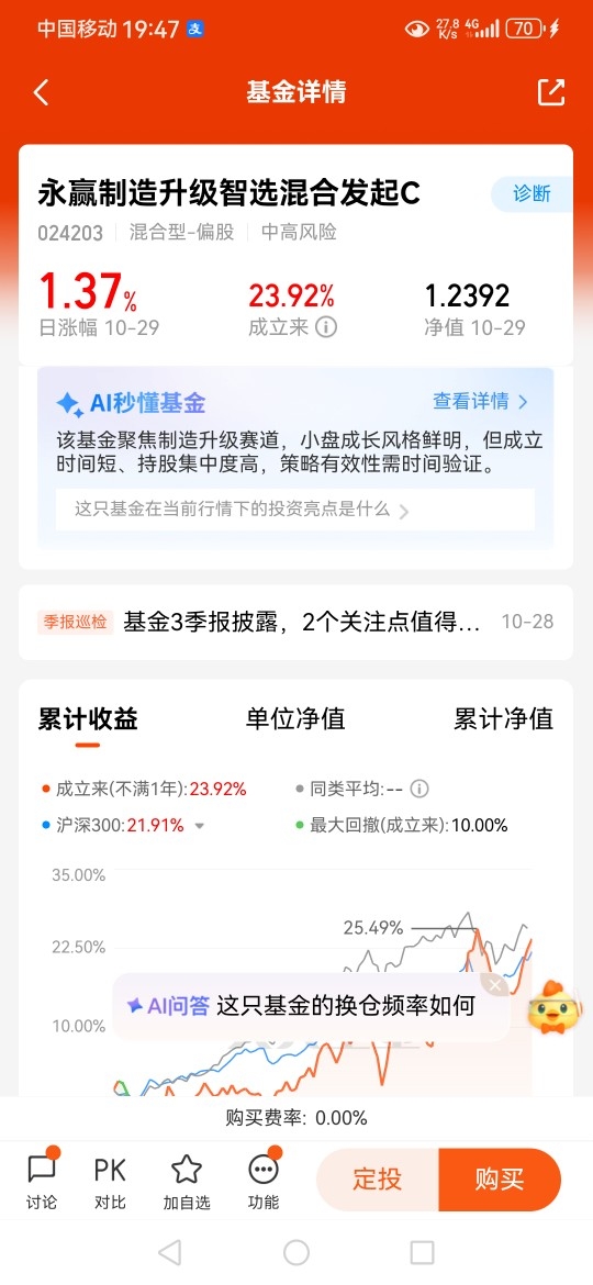 永赢制造升级智选混合表现亮眼,今日上涨+1.37%,成立以来涨幅+23.92%;