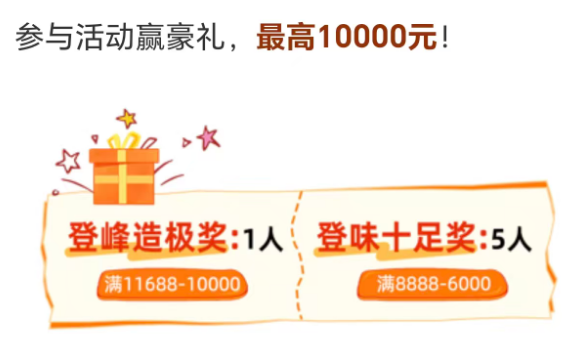奖项设置也挺实在,登峰造极奖要阅读量超8000、点赞超288、评论超88,且点赞加评论过388;登味十足奖是阅读量超5000、点赞超88、评论超38,合计过150。最后会按走心程度(50%)、思考深度(30%)和互动数据(20%)评奖,奖品是满减券:1个登峰造极奖给11688-10000券,5个登味十足奖给8888-6000券,还有1600个初露登芒奖给1888-50券,先到先得。