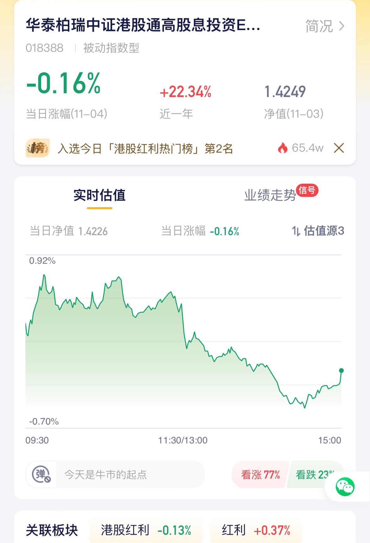 $华泰柏瑞港股通红利ETF联接基金C$最近红利行情真是越来越亮眼了,现在低利率环
