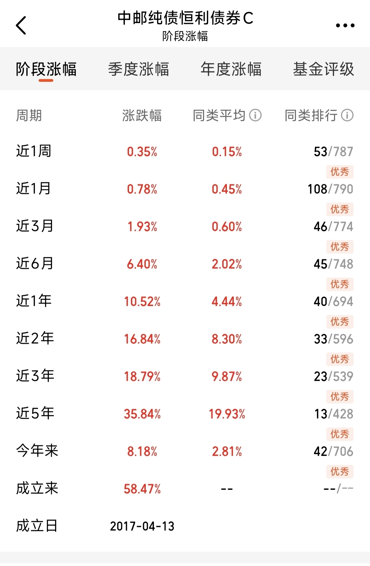 我在#科技小登大揭秘# 选择了“存储芯片” 今天加鸡腿了,混债$中邮纯债恒利债券C$ 连着两天21个蛋,稳稳的,底部位置可以布局,主投可转债和纯债,没有股票,低费率0.3%
