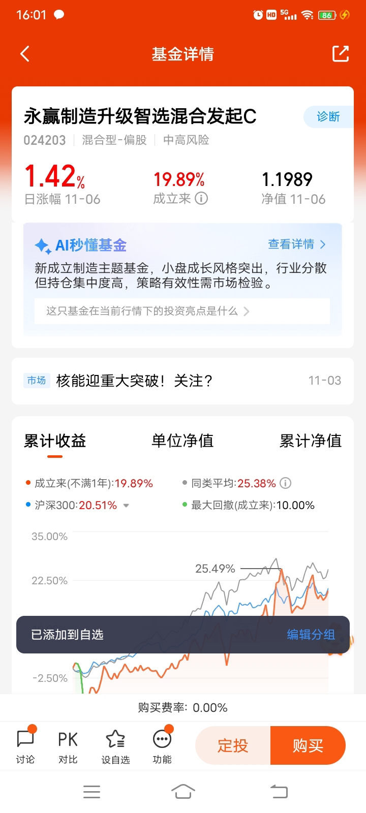 选这只永赢制造升级,也是冲着它的小盘成长风格——AI秒懂基金标签说它行业分散但持仓集中,刚好能精准卡到储存芯片这类细分赛道里。虽然它成立不满一年,暂时跑输同类平均的25.38%,但最大回撤才10%,比之前那只机器人基金稳不少,适合我这种想布局科技但不想承担太高波动的需求。