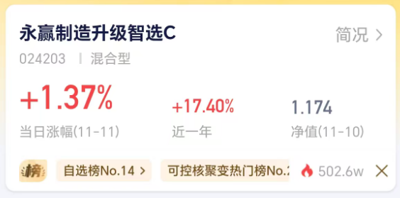#科技小登大揭秘#自从2024年下半年以来,可控核聚变板块整体强势拉升,展现出极强的市场爆发力。$永赢制造升级智选混合发起C$ (024203)作为主动管理型基金,正凭借灵活选股优势深度聚焦这一黄金赛道,值得长期锁定。