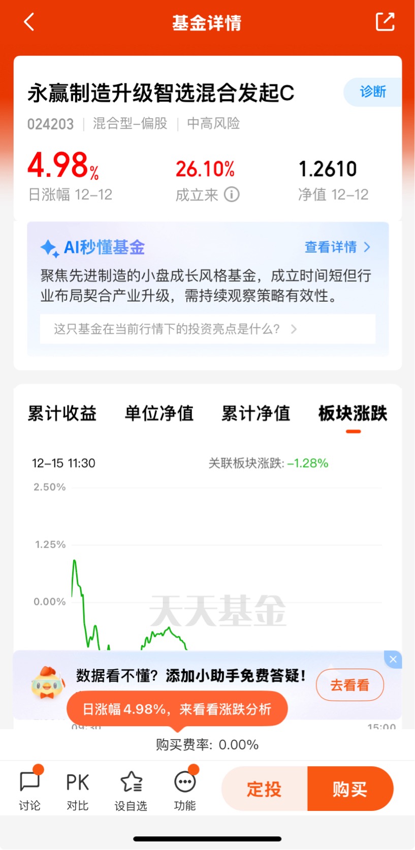 #美联储宣布降息25个基点 如何布局?# 聚焦核聚变的$永赢制造升级智选混合发起C$ 上一个交易日大涨4.98%,近一周收益11.06%,近三个月收益14.79%,近六个月收益26.10%,整体业绩优秀,永赢制造升级C作为国内首批专注于可控核聚变的公募产品,提前卡位这一具有颠覆性潜力的领域,为投资者提供了参与前沿科技发展的机会。国家对可控核聚变技术研发支持力度不断加大,多个试验堆项目推进加速,为行业发展提供了政策保障和技术支撑。基金可受益于政策红利和技术进步带来的企业价值提升。