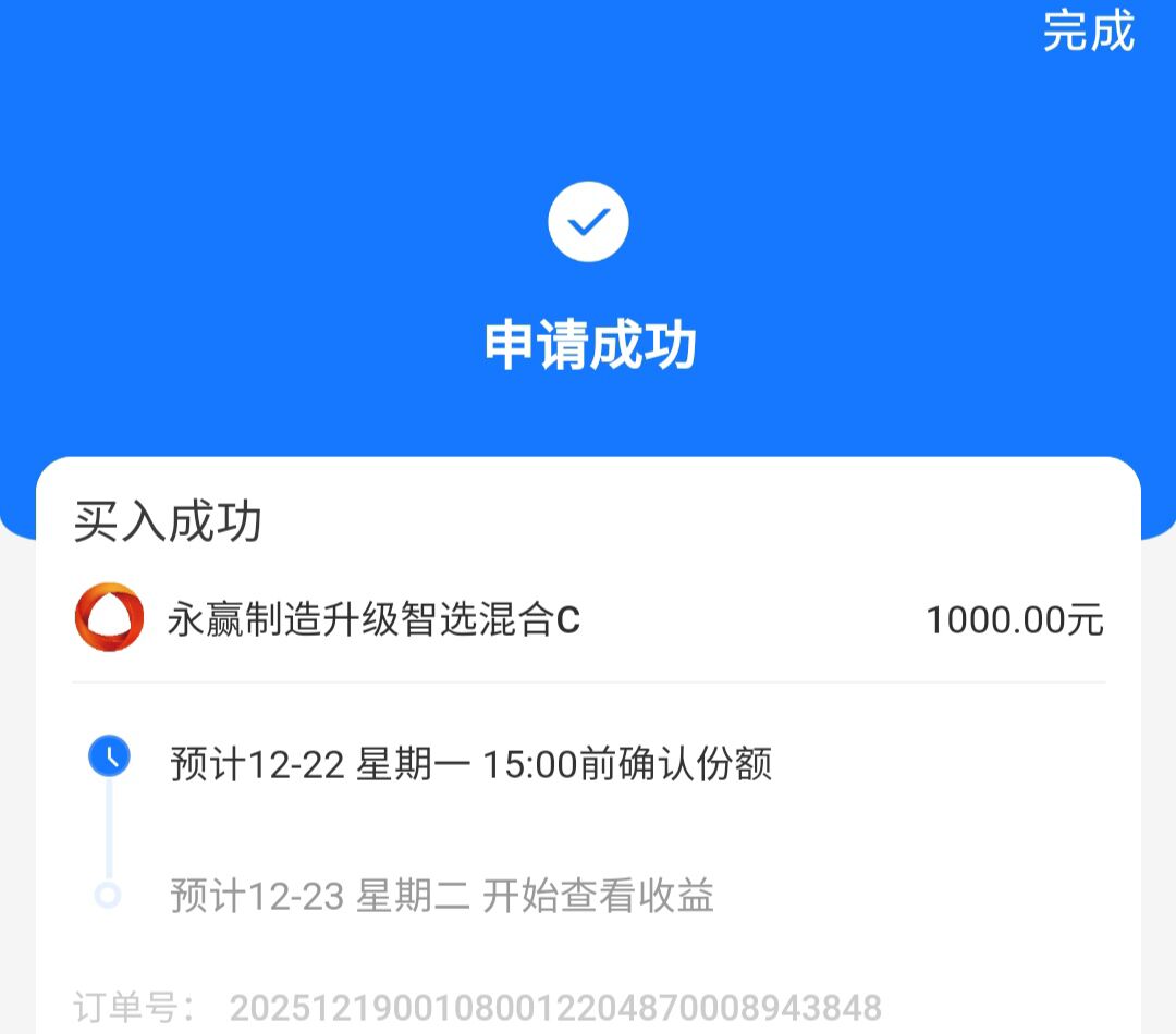 今日买入1000元$永赢制造升级智选混合发起C(OTCFUND|024203)$,该基金是目前市场上唯一一支聚焦可控核聚变的主动基,可控核聚变是人类终极能源,市场前景非常广阔,很多的国家都在加快这一方向的投入,在日前有报道称特朗普媒体与科技集团(DJT)和私营核聚变能源公司TAE Technologies合并,合并后公司将于2026年开始选址并建造聚变电站,目标是利用核聚变能源为人工智能提供动力,本次交易交易估值为60亿美元,这引发了DJT股价飙升41.93%,受此影响,今天A股可控核聚变也是大幅上涨,该基金重仓股王子新材、四创电子等涨停,预计会有不错的涨幅。