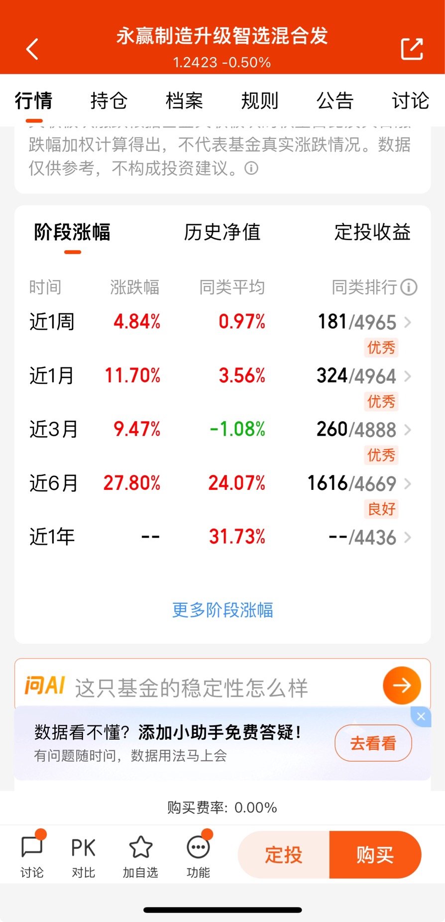$永赢制造升级智选混合发起C$ 近一周收4.84%,近一个月收11.70%,近6个月收27.80%,各个阶段表现优秀,还有发展空间!作为市场上唯一明确布局可控核聚变的主动管理基金,该基金精准捕捉上游材料与设备制造的先发优势,该基金重仓的超导材料、真空设备等领域,正是新兴产业爆发期最早受益的环节。通过主动选股,深度绑定优质企业,既分享短期建设红利,也布局长期商业化价值。