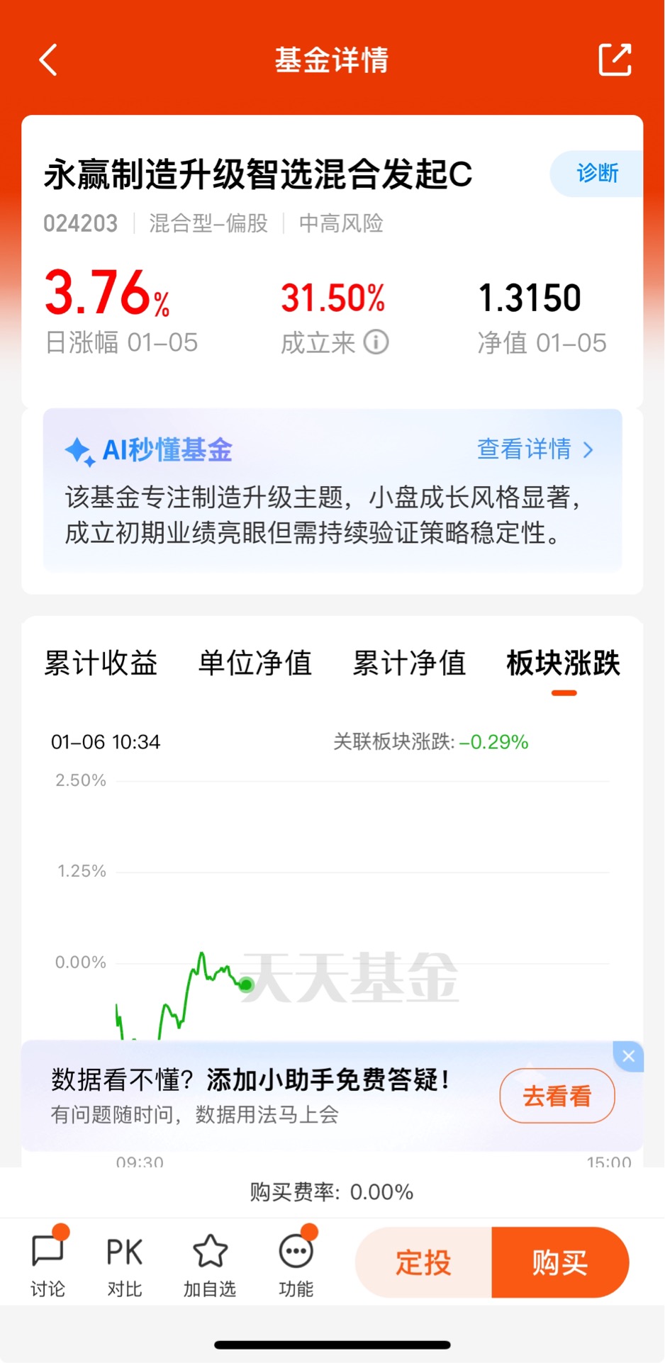 昨天开门红$永赢制造升级智选混合发起C$昨天收3.76%,近一个月收15.82%