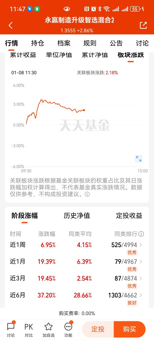 $永赢制造升级智选混合发起C$昨天大涨+2.86%,已经连续四天上涨,看样子今天