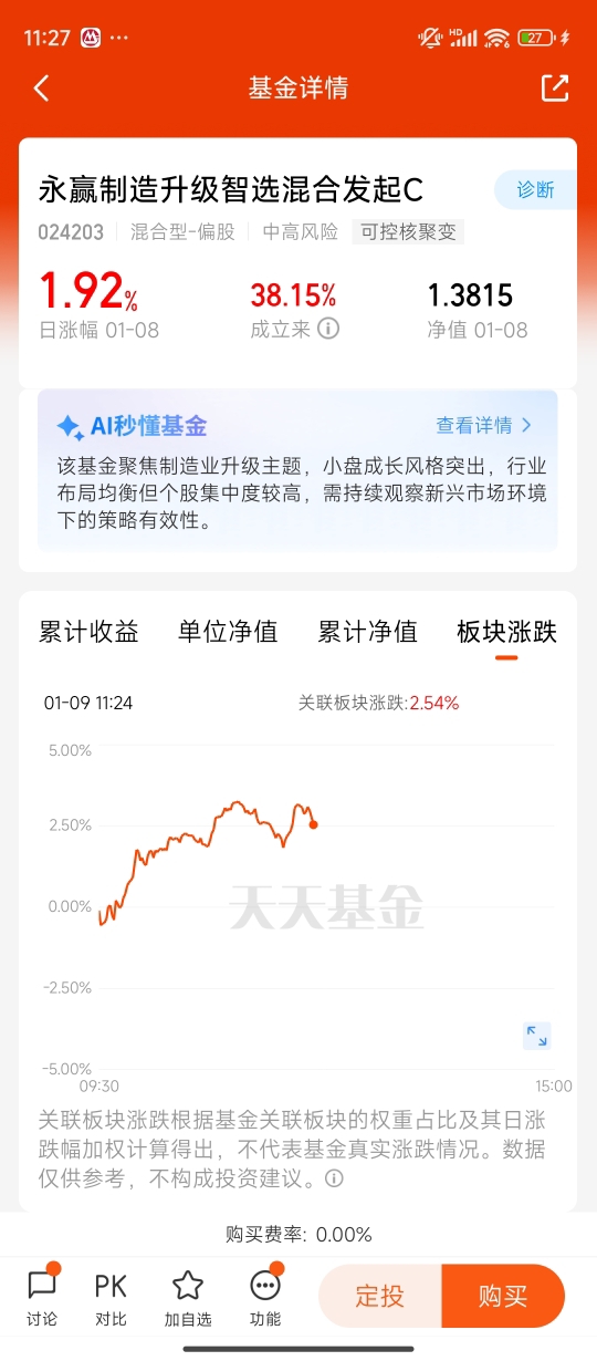 #2025超额关键词# 五天连涨行情,表现优秀的$永赢制造升级智选混合发起C$ 昨晚大涨1.92%。近一周涨幅9%,近三月涨幅21.74%。近半年涨超41%。今天又冲2个点了,周五来个连红吧。作为全市场唯一聚焦可控核聚变的主动管理基金,享有稀缺性前瞻性,率先布局精准卡位。赛道发展符合新质生产力关键要素,前景广阔!