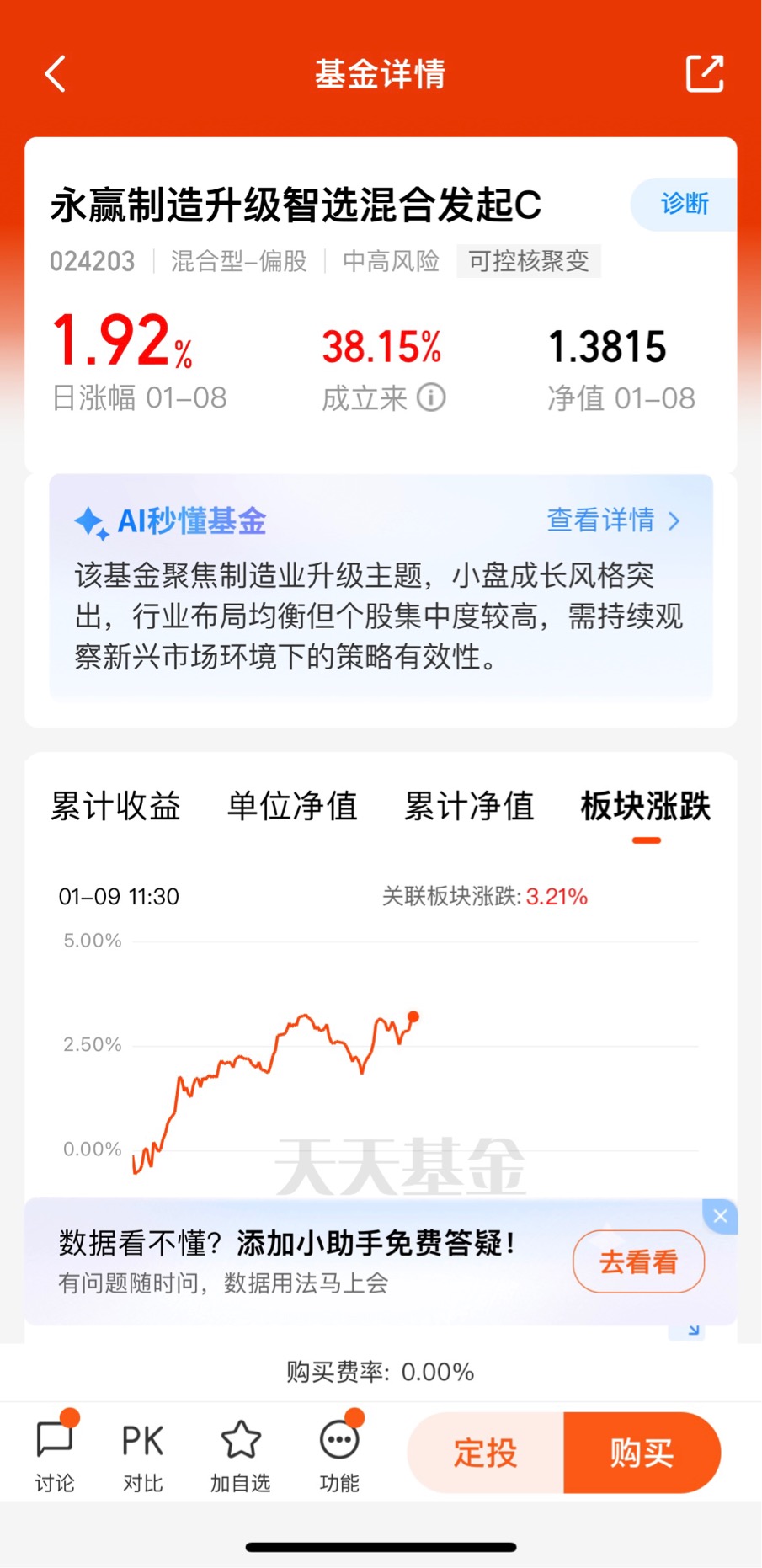 $永赢制造升级智选混合发起C$ 昨天收1.92%,近一周收9.00%,近一个月收18.24%,近3个月收21.74%,近6个月收41.84%,各个阶段表现优秀!可控核聚变作为清洁能源核心方向,近期利好消息不断催生行情热度。深度聚集可控核聚变概念。凭借深度研究后的主动选股持续收获成长回报!深耕这一稀缺赛道,通过主动选股精准捕捉产业链中的优质标的,在行业快速发展中持续斩获收益!